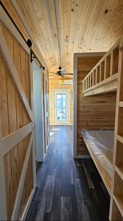 At just 300 sq. ft., The Haven is tiny but mighty! This minimalist park model home provides all the essentials—minus a full-size kitchen—making it perfect for weekend getaways, guest houses, or studio-style living.